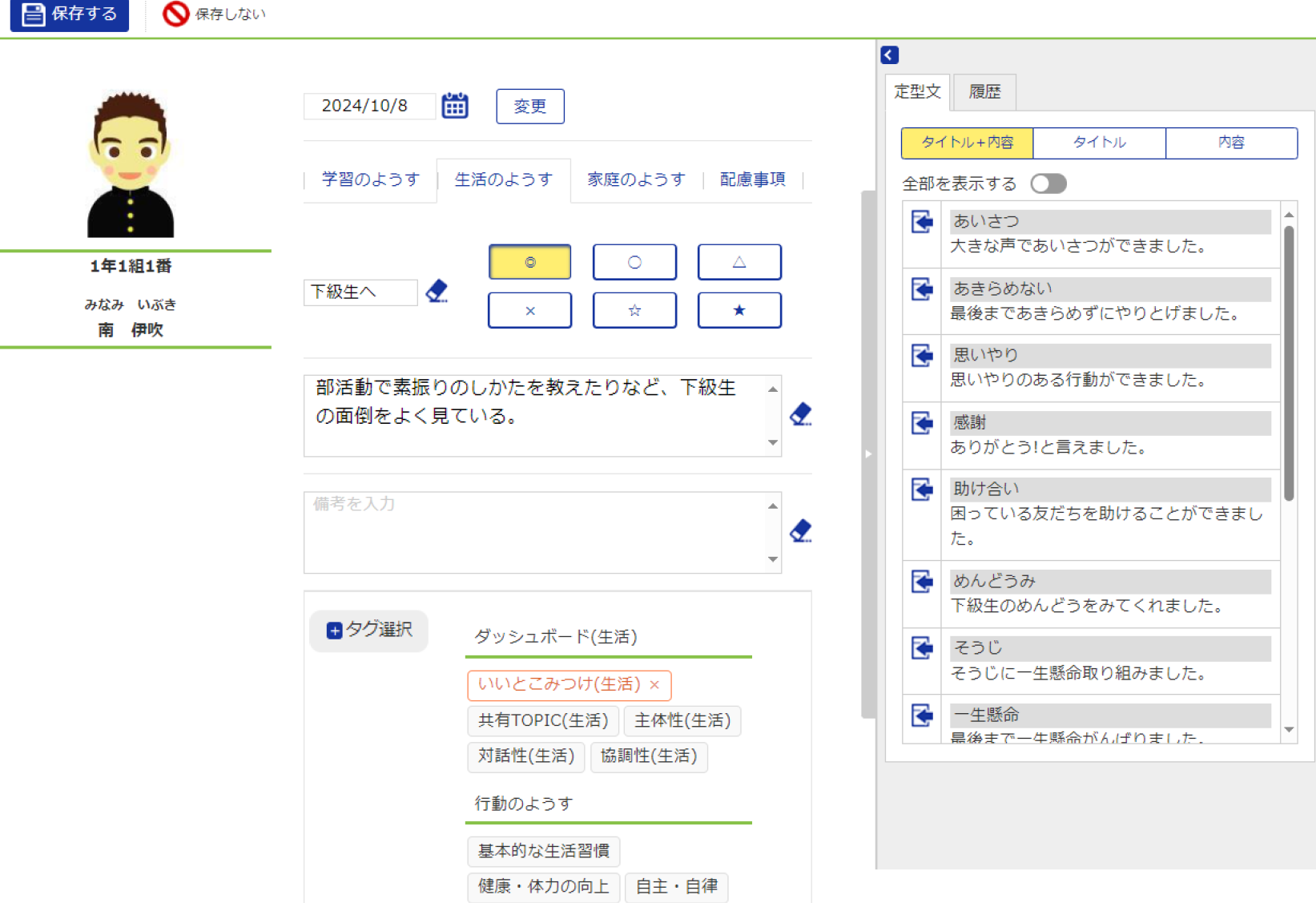 ただ、「いいとこみつけ」の活用については、日々の多忙な業務の中で新しい機能への移行や定着に時間がかかっており、現場からはまだ十分に活用しきれていないという声も届いています。今後は、先生方に便利さを実感してもらうための継続的な浸透策が必要だと感じています。